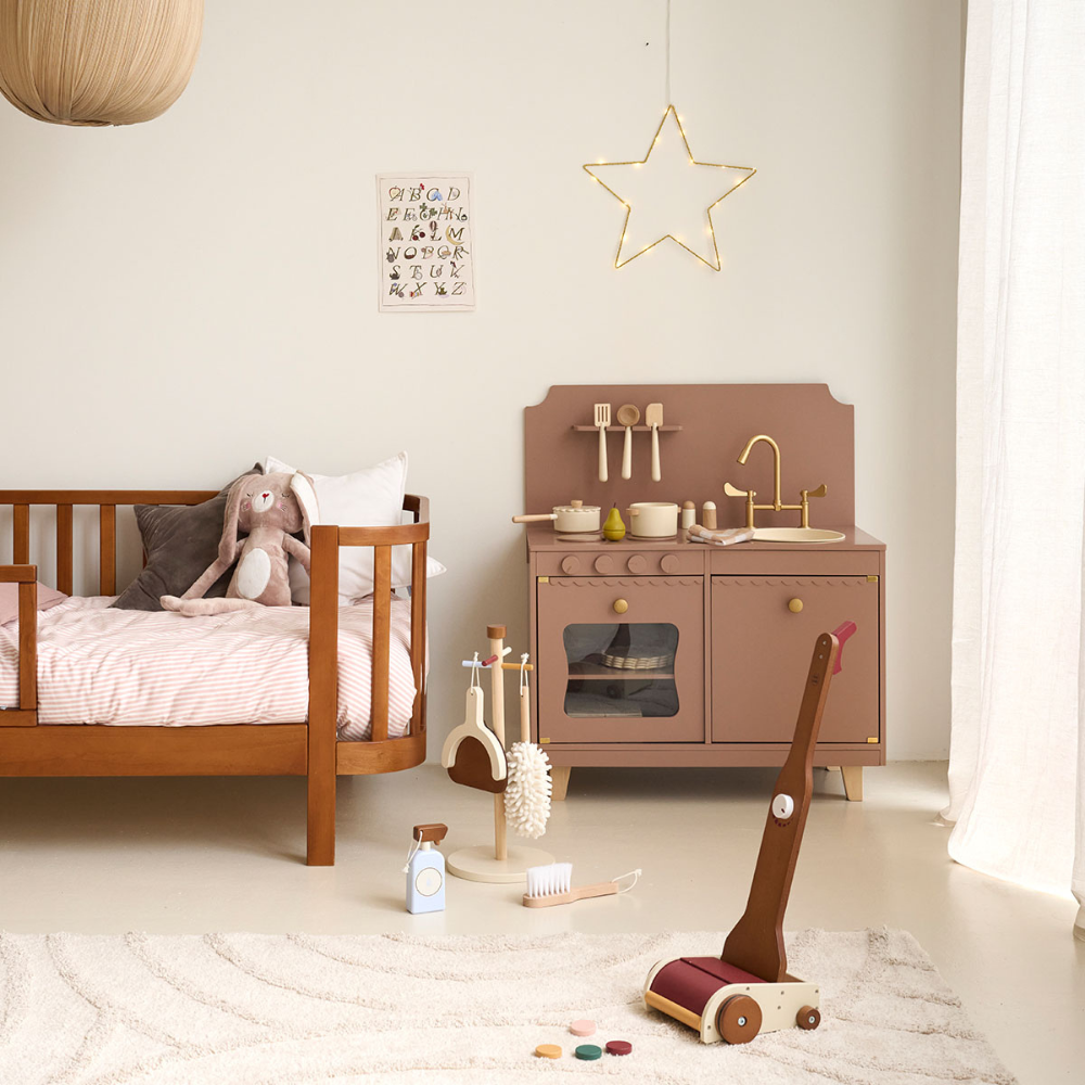 Be inspired by warm tones, natural materials and a soft, comforting atmosphere. Gentle fabrics and warm wood create a sense of calm and closeness – perfect for playing, cuddling and dreaming.