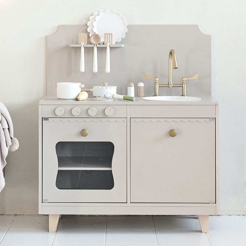 Wooden play kitchen «Sorbier» | Incl. 13-piece accessory set | Taupe